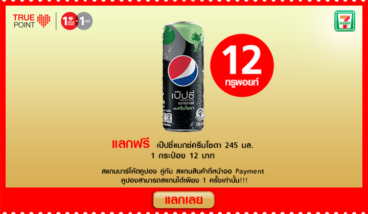 อิ่มคุ้มที่ 7Eleven! ใช้ 12 ทรูพอยท์แลกเป๊ปซี่ครีมโซดา ที่เซเว่นทุกสาขา แลกเลย